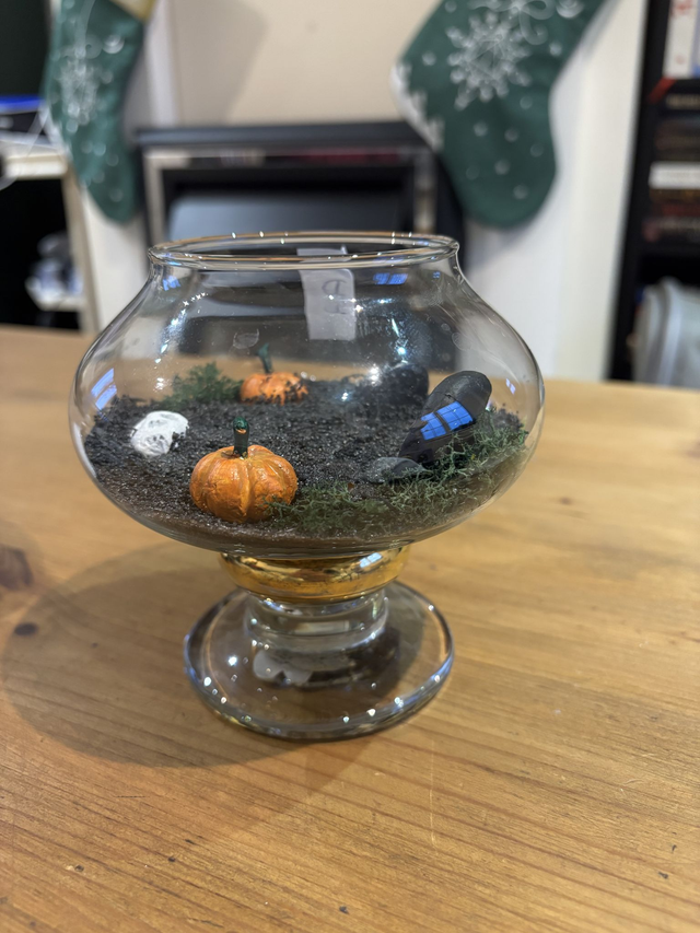 Every element is permanently affixed, allowing you to display the piece upside down, like a preserved haunted world in a jar.